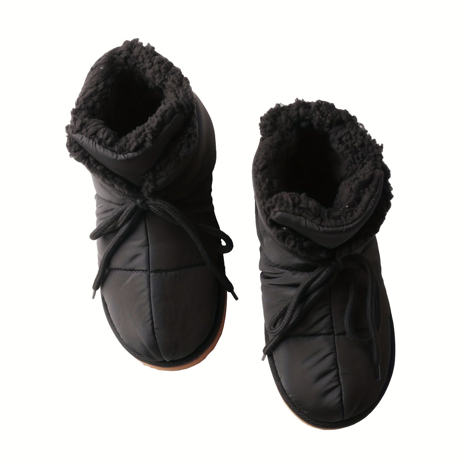 1 Pair TMA EYES&MAIA Women's Winter Plush Snow Boots - Cozy Lace-Up Flat Heel with Anti-Slip EVA Sole, Warm Black Fabric Upper & Inner Lining for Indoor\u002FOutdoor Use, Comfortable Thick Bottom Design, Winter Boots