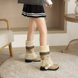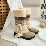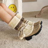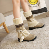 Women's Mid-Calf Slip-On Winter Snow Boots, Cozy Faux Fur Lined with Decorative Studs & Pom-Poms, Warm Suede Round Toe High Quality Booties for Cold Weather, Cold Weather Gear | Fabric Inner Lining, Winter Boots